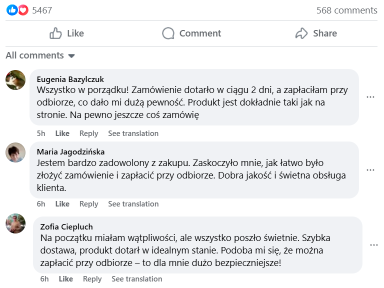 Jestem bardzo zadowolony z zakupu. System płatności za pobraniem jest świetny, zwłaszcza jeśli wolisz sprawdzić produkt przed dokonaniem płatności. Wszystko dotarło idealnie zapakowane i w przewidywanym czasie, 100% zadowolenia.